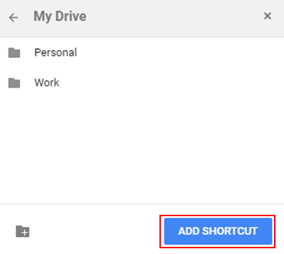 Locate your newly created folder and click ADD SHORTCUT.