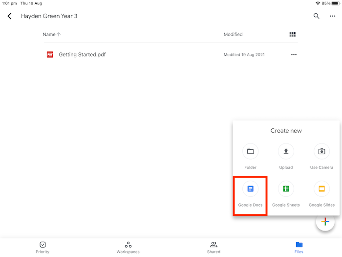 Create Google Docs - IOS
