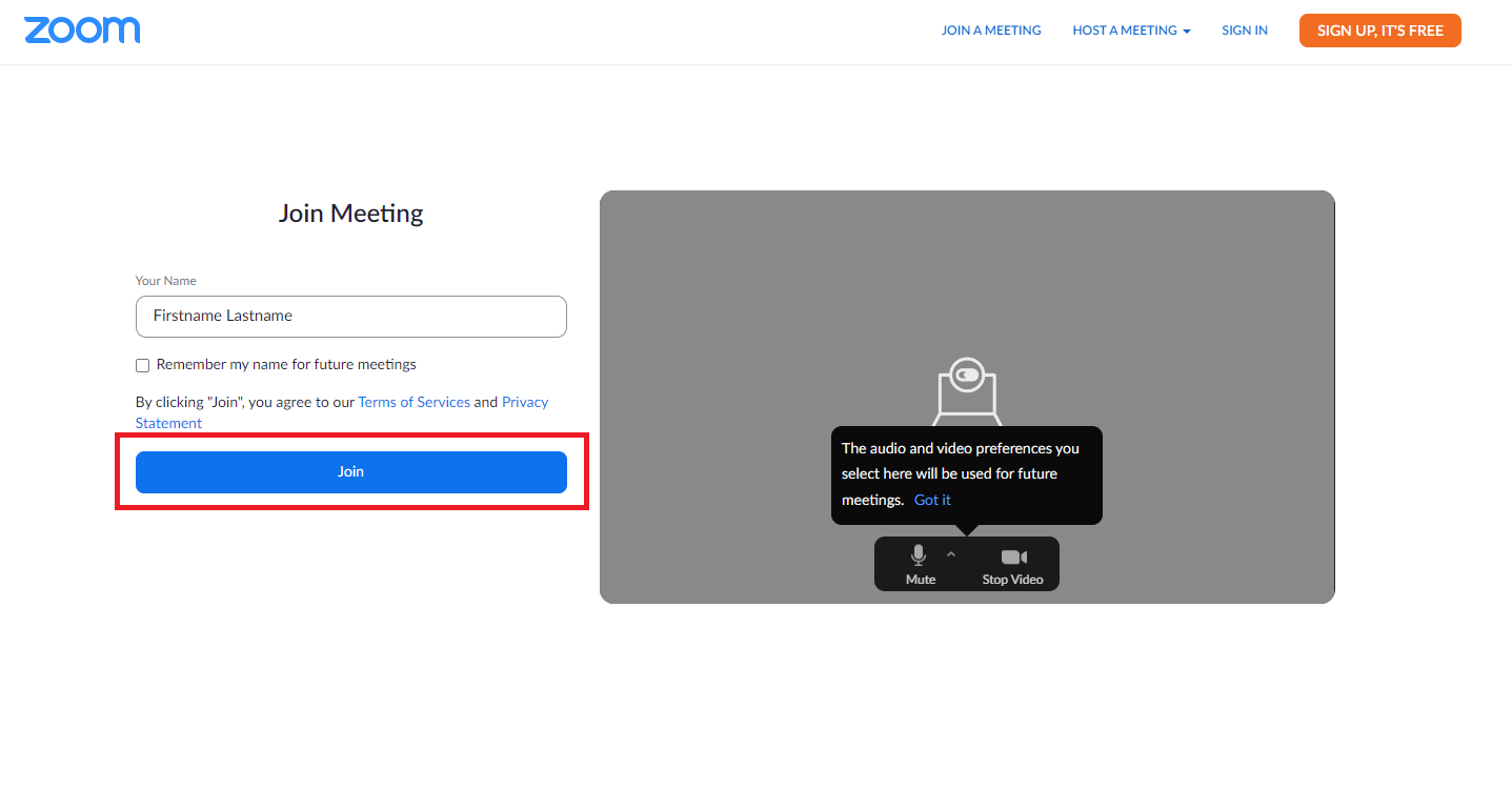 Enter your First and Lastname and click Join
