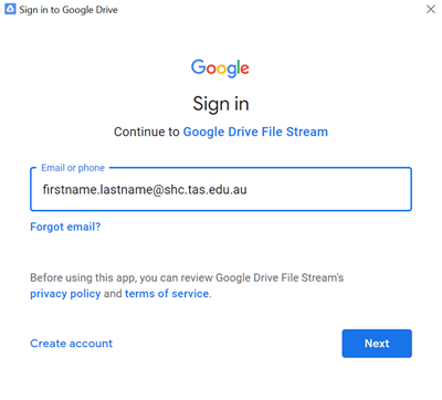 Once installed, you will automatically be prompted to sign in. Use your Sacred Heart College email.