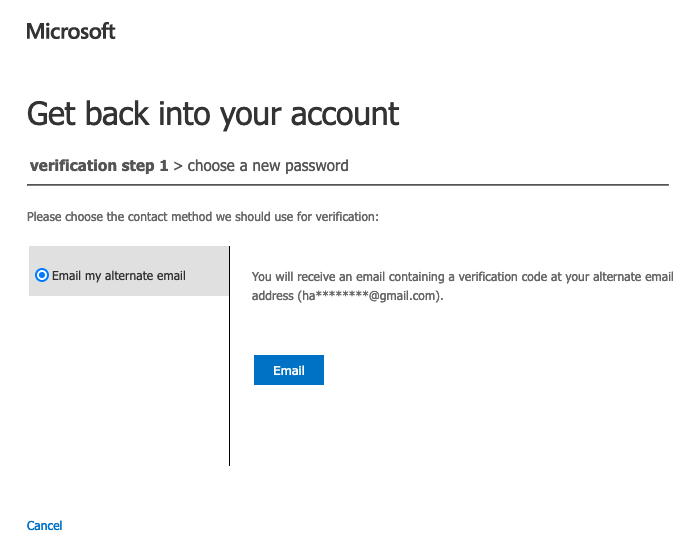 Click Email. This will send a verification code to your personal email address that we currently have on file.