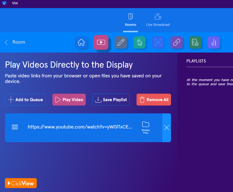 The Video Direct feature streams a video directly to the room's display. The video will only be played on the room's TV or Projector screen, freeing up your device for simultaneous use during play.