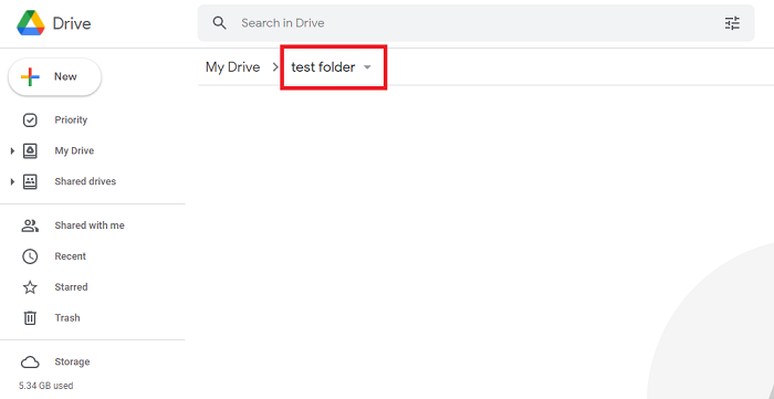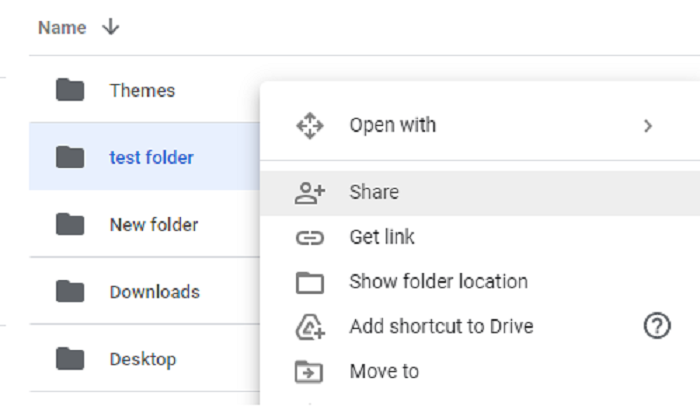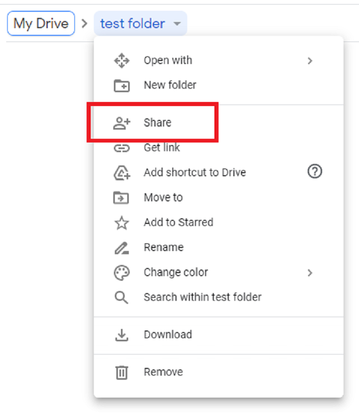 In the folder of your choice click the folder name at the top or secondary click the folder in My Drive.