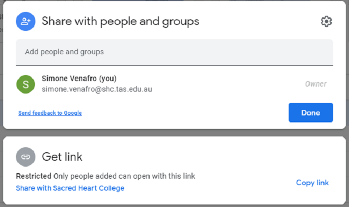 Here you can type someone's name or copy a link to send to added people or groups.