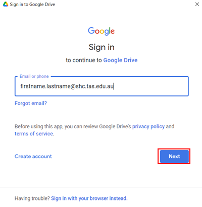 Sign in with your SHC email address and click next.