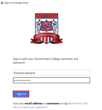 Sign in with your SHC password and click Sign in.