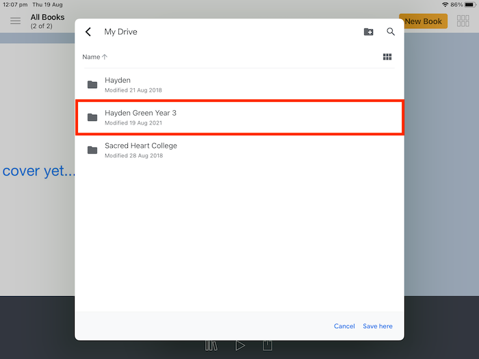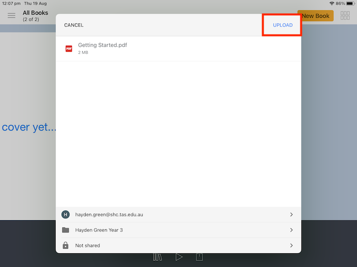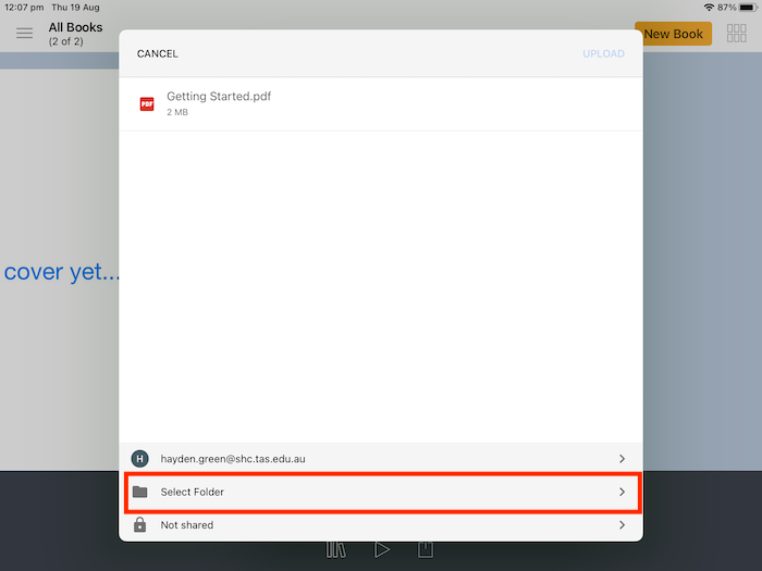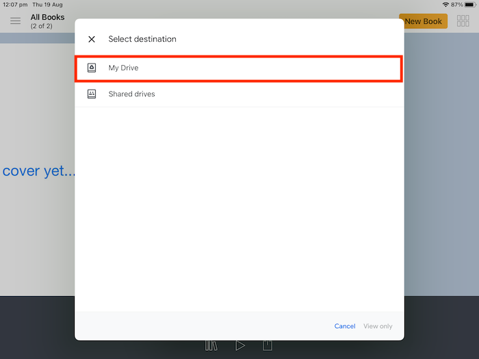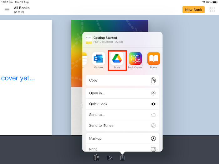 Upload Book Creator to Google Drive - IOS