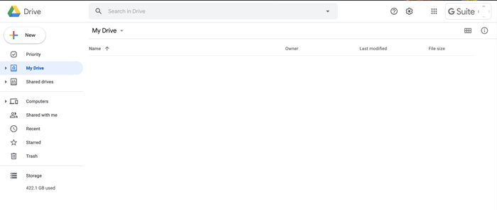 If you do not have the Google Drive application, you can still upload work to your My Drive through Google’s website.