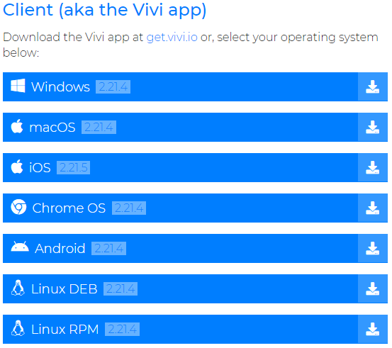 Go to https://www.vivi.io/downloads/ and download the relevant “Client” for your laptop operating system.